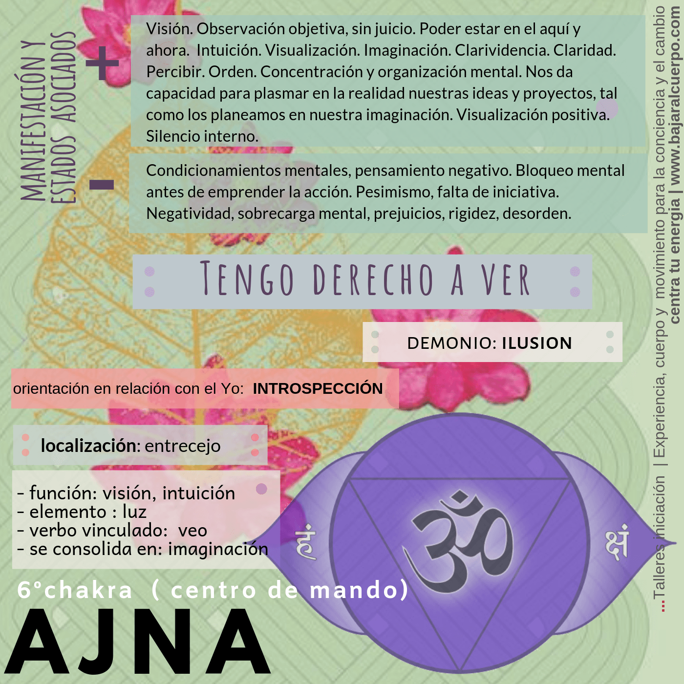 - desbloqueo y sintonización del centro para el proceso de desarrollo personal.